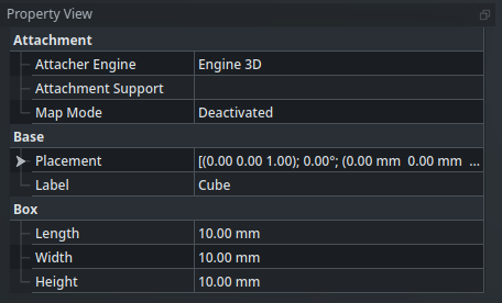 Here, for the Part object, we can see that we have for instance properties related to the position and orientation of the object in 3D space (called its placement, more on that in a future post), its label, its color, and that we can make it transparent if we want.