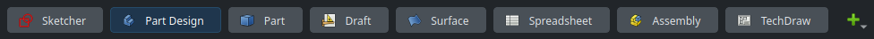 FreeCAD is deeply modular, and most features are organized around workbenches. A workbench is a module that provides a collection of tools and functions related to a certain task or domain, and allows creating and manipulating objects relevant for this domain. For instance, the Sketcher workbench is used (unsurprisingly) to create Sketch objects, and contains all the tools required for this task : creating lines, circles and other 2D geometric primitives; transforming and manipulating these primitives; adding constraints on them; and so on. If you are familiar with Fusion or SolidWorks, this is very similar to the “workspaces” of the former, or the tabs in the main ribbon panel of the latter.