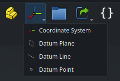 The second icon is a drop-down menu that can be used to create datum objects (coordinate system, plane, line, point), equivalent to what is sometimes called “construction geometry” in other CAD software.