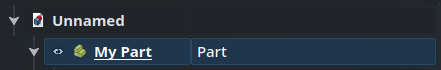 The last 3 icons are groups, links and variable sets — we will cover those as needed, but by the end if this series, they will no longer have any secret for us. For now, start by creating a Part, by clicking on the yellow staircase. It will appear in the Tree View on the left.