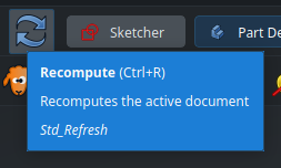 Some objects can depend on each other. For instance, a geometric shape may depend on an extrusion feature, which itself may depend on a sketch, which itself may contain dimensions that depend on a variable set. Internally, FreeCAD models the relationships between all objects in your document as a graph. When the variable set is modified, FreeCAD knows that all the other objects that depend directly or indirectly on it needs to be recomputed. In most cases, it will perform the recomputation automatically and everything will be updated instantly — this is the beauty of parametric CAD modeling. Sometimes, though, this recomputation may be deferred for performance reasons, and instead the object will show a small blue tick to mark it as “needs to be recomputed” :