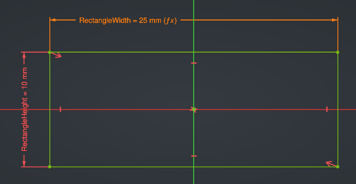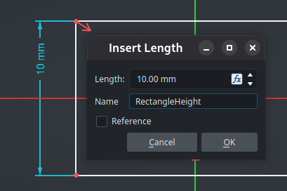 First, to make things easier, we need to give a name to the reference dimension (the height). Double-click on it and specify its name, for example “RectangleHeight” :